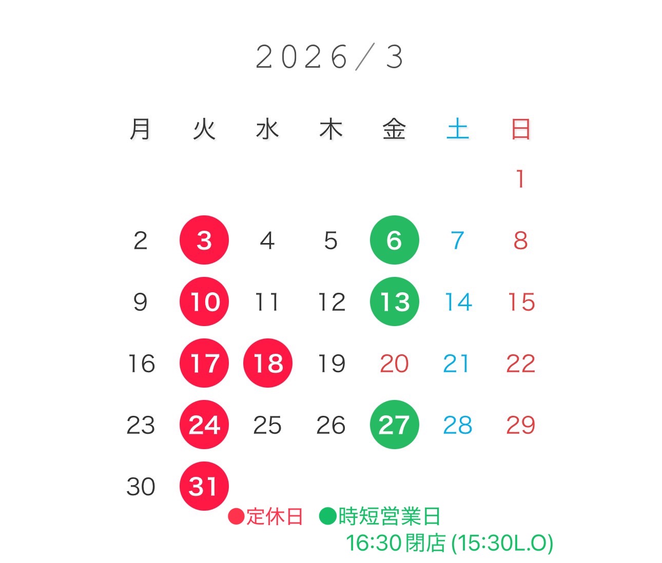 3月営業日のご案内です。