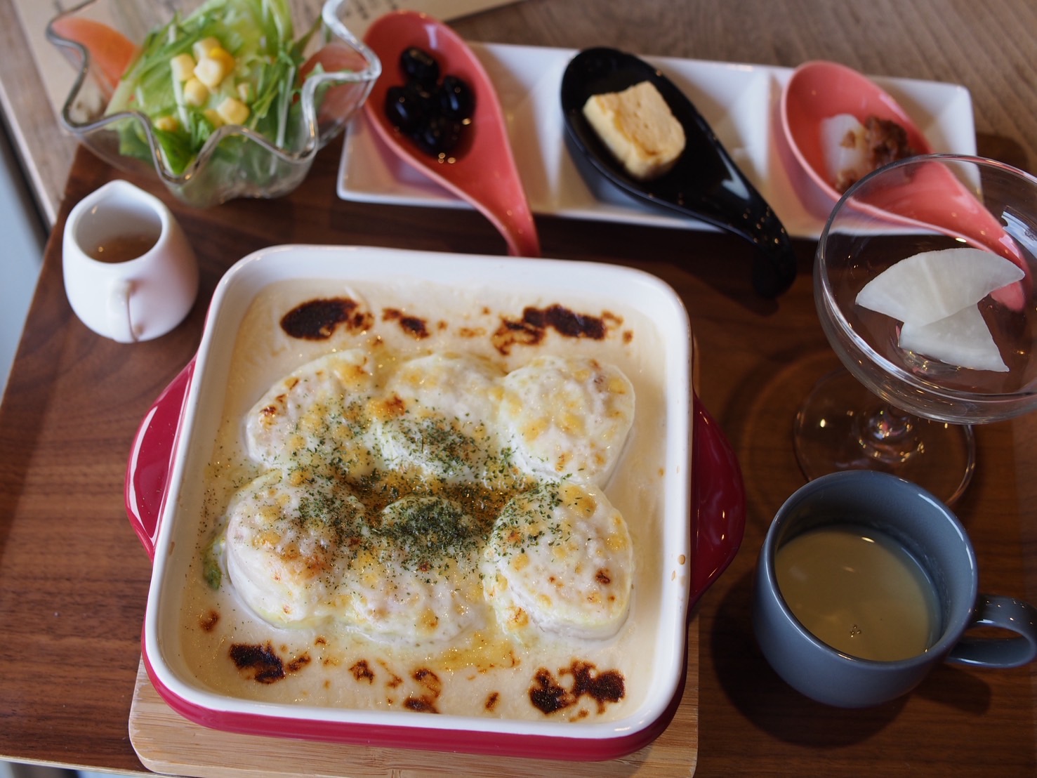エビやイカ、貝類などに自家製ホワイトソースで煮込みます。